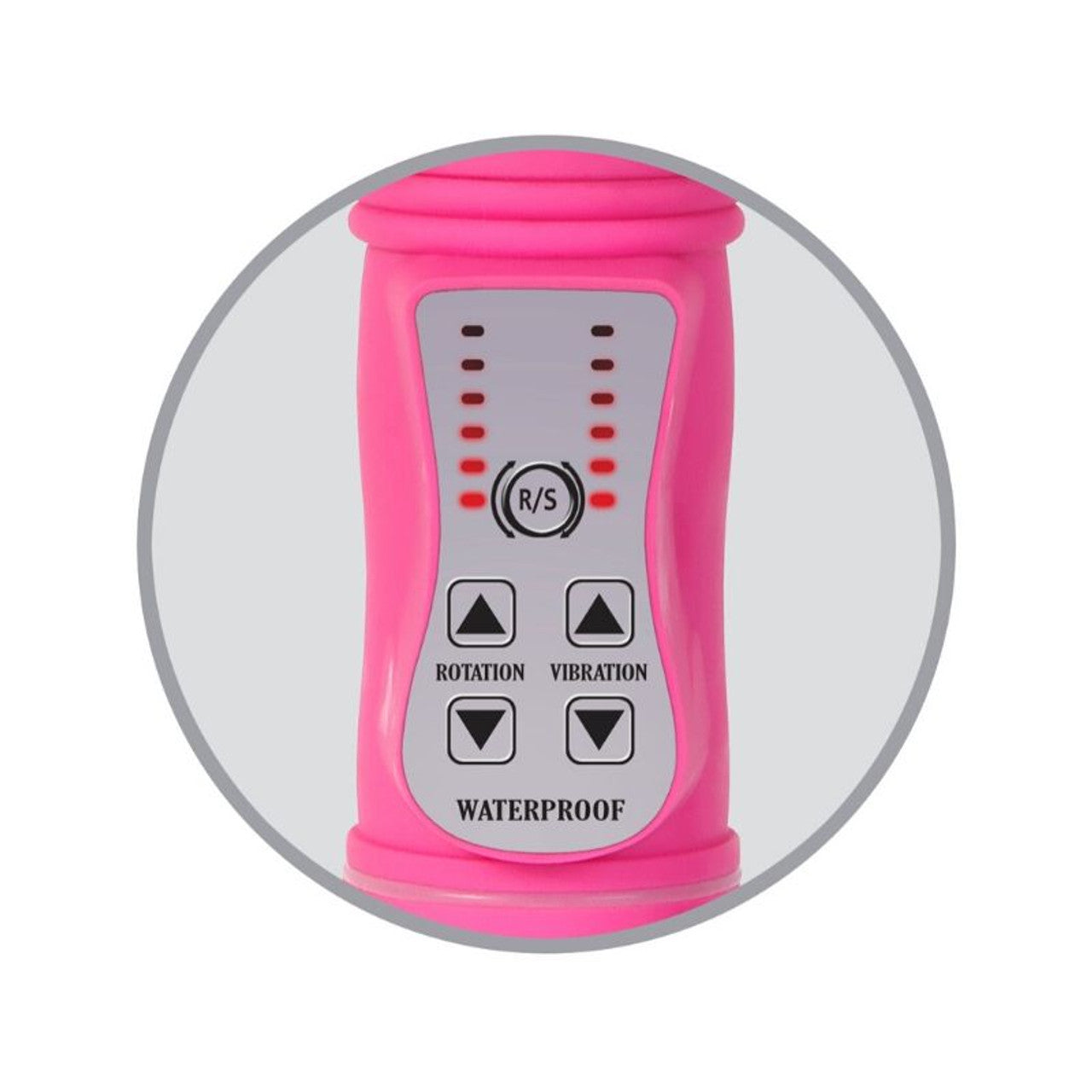 Halfway down the shaft, we're faced with a second treat: the rabbit vibe, which has 7 different rabbit functions to further modify your erotic experience. This fantastic toy's waterproof design is perfect for your wild and wet fun, so grab it and jump into the shower or tub when you're feeling frisky!