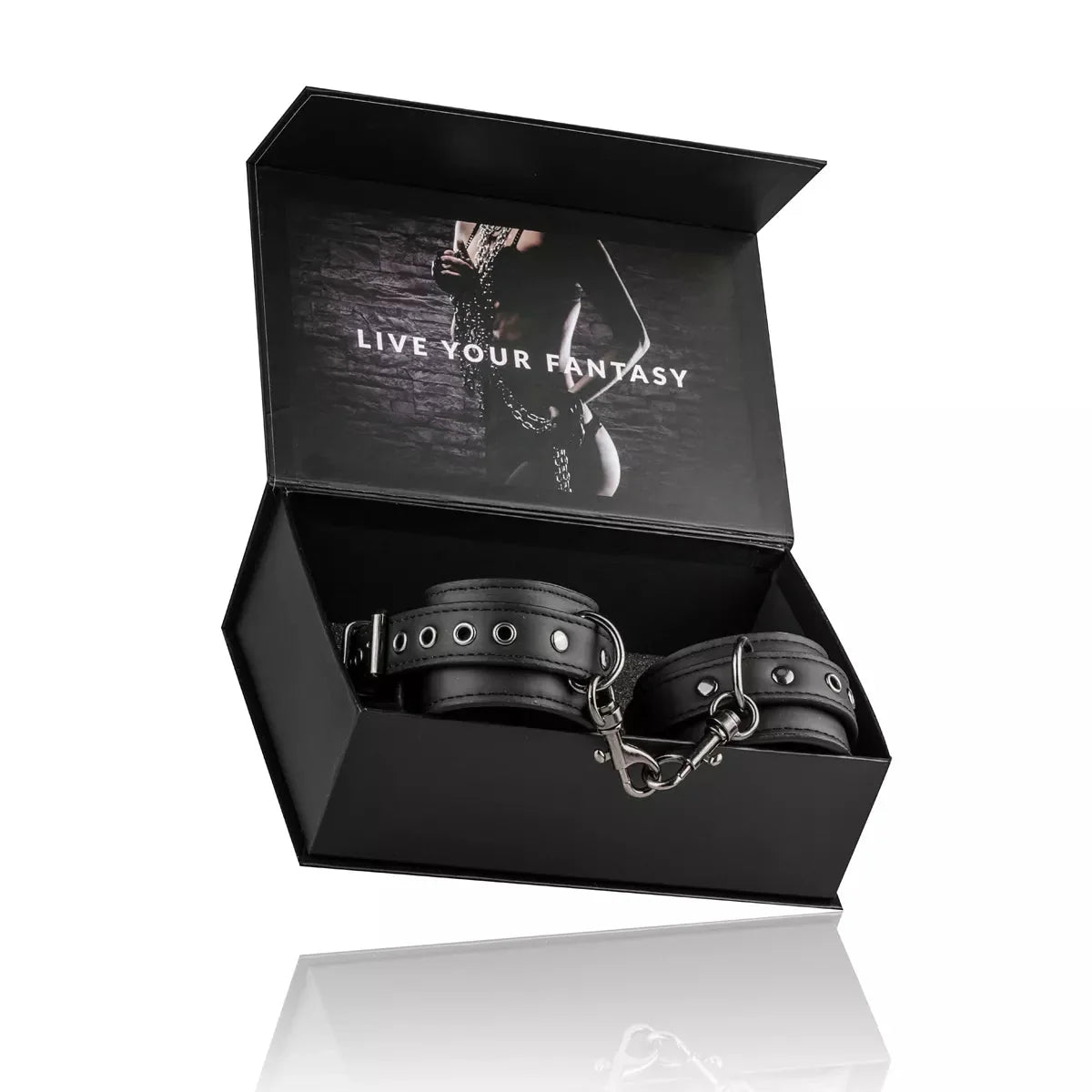 Excellent for bondage, the cuffs have a metal chain around them and have clip attachments. The clips can be attached to each other for more control, or the clips can be attached to something else for improved bondage play.