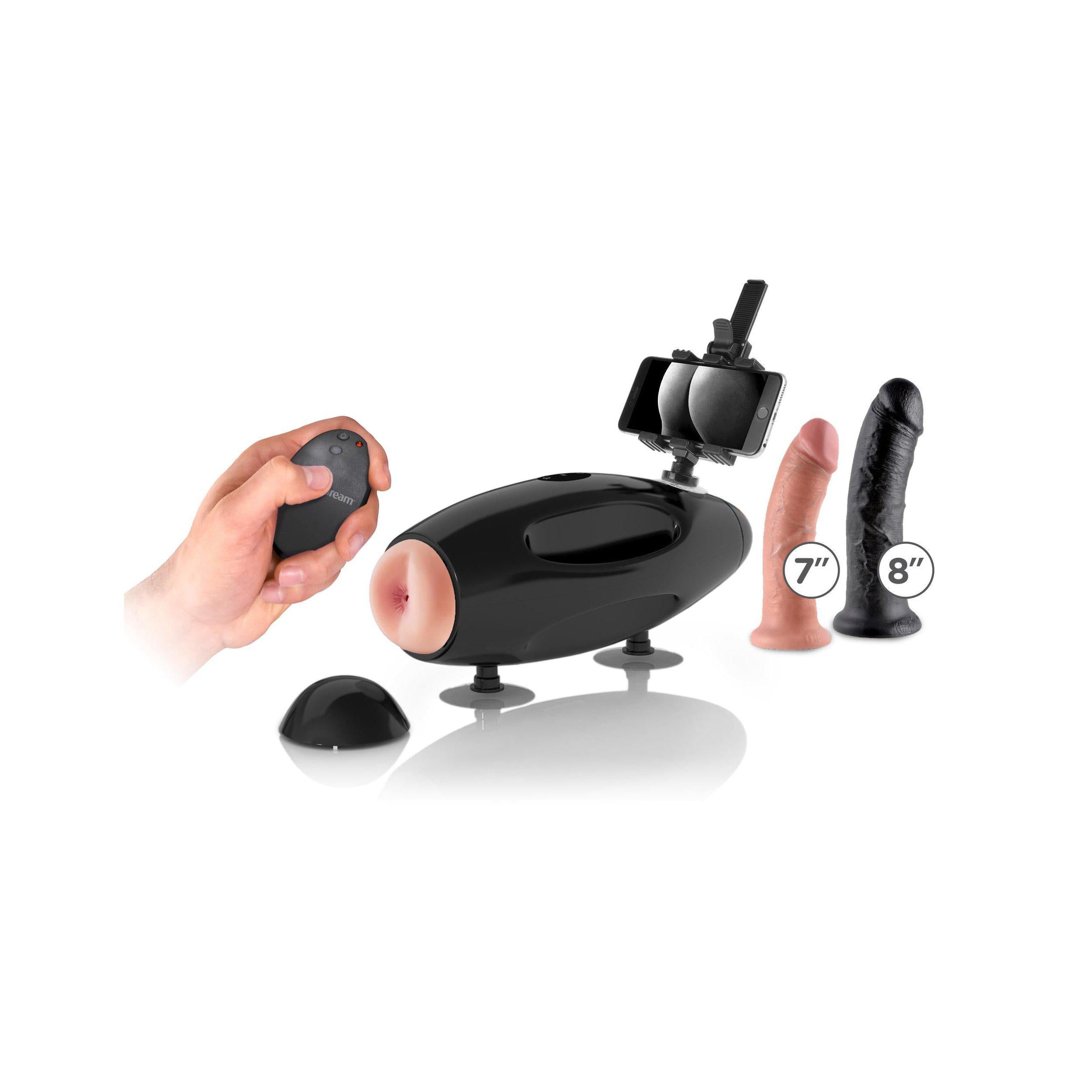 The Fetish Fantasy Extreme Sex Machine is designed to look sleek and elegant and pack a powerful punch. It is double-ended: one side has the choice of a 7" or 8" King Cock dildo, and the other is the super-soft anal stroker. If necessary, the machine can be used as a solo play machine and is controlled via a wireless remote.